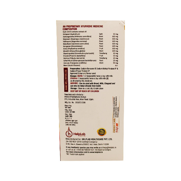 You should carefully read the label before using Helplab's ENERGYCARE SHILAJEET MALT. Children should take one teaspoon twice a day, and adults should take one to two teaspoonfuls twice daily or as a doctor recommends. Avoid taking more than what is advised. Put the items away in a cool, dry area. Keep it away from the reach of children.