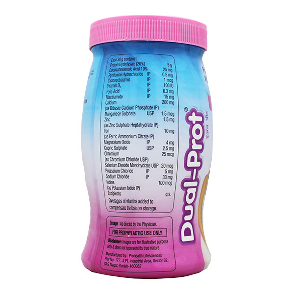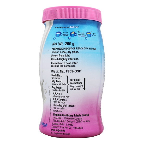 DUAL PROT POWDER by Helplab is a protein powder fortified with DHA that boosts the body's overall metabolism and immunity. It supplies essential nutrients for the development of the foetus. DHA promotes brain development in children and foetuses.