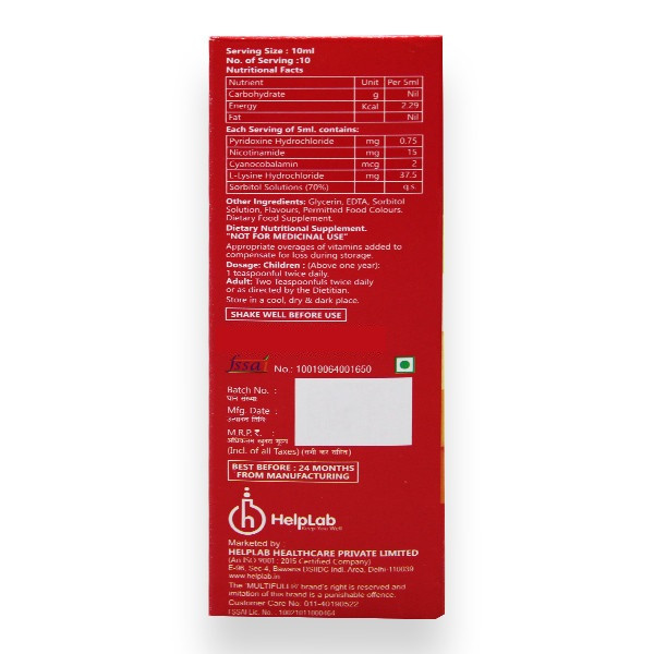 Read the product label for Helplab's MULTIFULL - L SYRUP carefully before use. Store away from direct sunlight in a cool, dry area. Before ingesting any supplements, seek medical advice. Do not take more than the suggested amount. Before using this supplement, pregnant, nursing, young children, and people with certain medical issues should speak with a doctor.