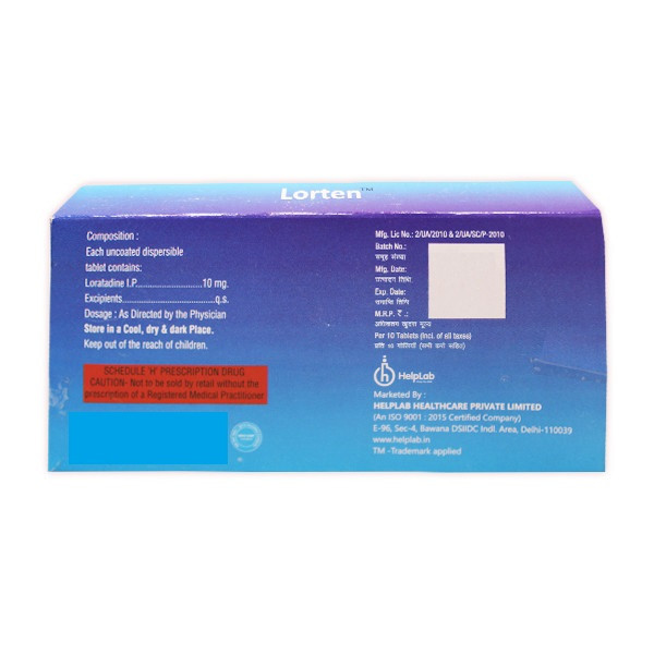 Take the Helplab Lorten 10mg Pill on an empty stomach. Depending on what you are using it for, the dosage may change. Take it exactly as your doctor has advised. You could just require this medication when you experience symptoms, or you might need to take it every day to avoid symptoms. Your symptoms can return if you stop taking it earlier than recommended. In general, this medication is highly secure. If you have any liver, kidney, or cardiac issues, you should let your doctor know before taking it.