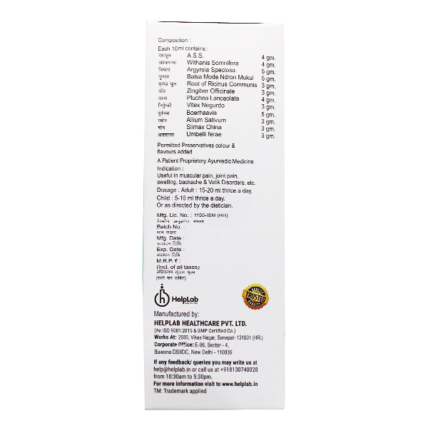 Orthohelp Syrup from Helplab aids in reducing joint and muscle pain. It effectively addresses the underlying issue. Using this syrup on a regular basis may help to relieve joint pain, back pain, knee pain, and neck or shoulder pain.