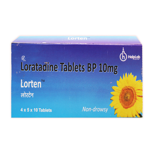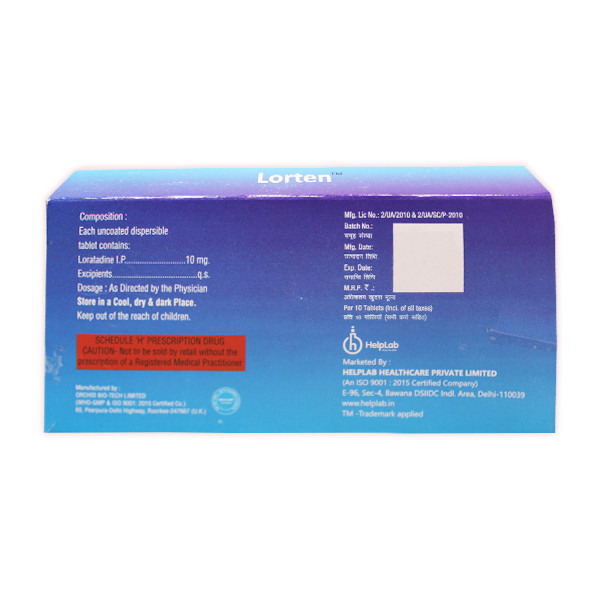 The Lorten 10mg Tablet from Helplab is a member of the antihistamine drug class. Many allergy disorders are treated with it. It eases signs like rashes, swelling, and itching.