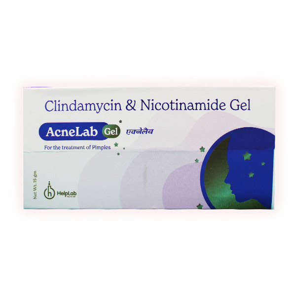 ACNELAB GEL by Helplab is made up of two medicines: Clindamycin and Nicotinamide. Clindamycin is a lincomycin antibiotic that works by penetrating the skin and killing the bacteria that cause acne. On the other hand, Nicotinamide is a type of vitamin B responsible for anti-inflammatory effects.
