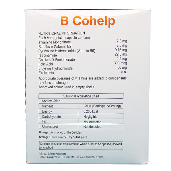 Helplab's BCOHELP CAPSULE is a premium multivitamin complex supplement with a powerful blend of essential vitamins and nutrients for optimal health and well-being. Pantothenate 2.5mg, Folic Acid 300mcg, and L-Lysine Hcl 50mg work together to promote healthy immune function, energy metabolism, and overall well-being.