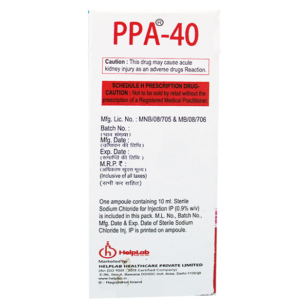 The PPA Injection from Helplab is also used to stop stress ulcers in critically ill patients and is given prior to anaesthesia to assist stop issues from aspiration. It is a member of the proton pump inhibitors class of drugs (PPIs). A healthcare provider will inject this medication into your vein only if your doctor determines that this is the best course of treatment for you at this time rather than taking a tablet.