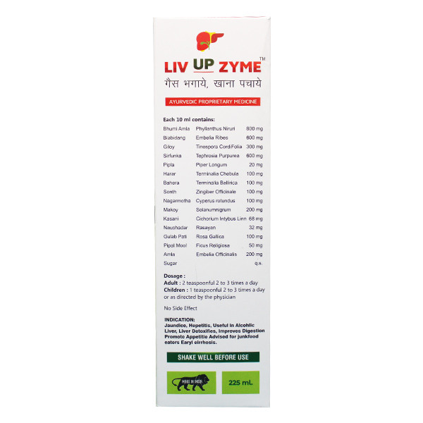 LIV UP ZYME SYRUP from Helplab is a complete formula that aids in the cleansing and detoxification of the skin and internal organs such as the liver, blood, intestines, and bladder. This herbal Syrup is a dietary supplement designed to naturally improve liver function and support the body's natural detoxification ability.