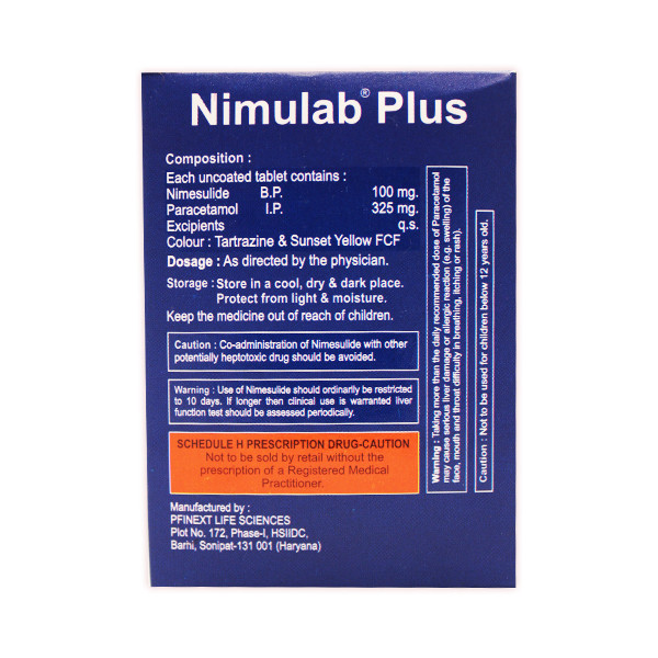 The NIMULAB TAB from Helplab is a combination drug that aids in pain relief. It treats rheumatoid arthritis, ankylosing spondylitis, and osteoarthritis pain and inflammation. Moreover, it is used to treat fever, back discomfort, toothaches, ear pain, and throat pain.