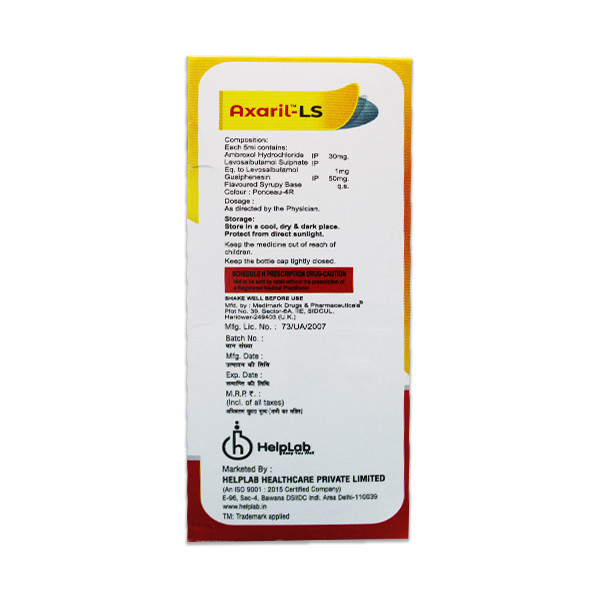 The Axaril LS Oral Drops from Help Lab are intended to treat coughs that produce mucus. It thins mucus in the lungs, windpipe, and nose, making it simpler to cough out. Moreover, it relieves runny noses, sneezing, itching, and watery eyes.