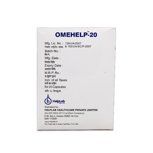 Omehelp, 20mg from Help Lab A medication called a capsule lowers the acid your stomach produces. Heartburn, acid reflux, and peptic ulcer disease are just a few of the stomach and intestine disorders that it aids in treating.