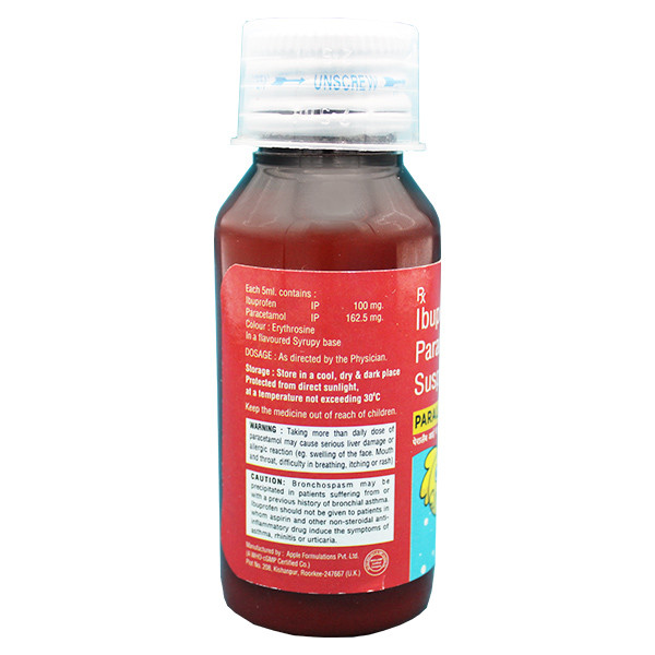 Ibuprofen and paracetamol are two medications in Helplab's Paralab IP Syrup. Both of these are categorised as non-steroidal anti-inflammatory medications (NSAIDS). In both infants and children, Paralab IP Syrup helps reduce body temperature (fever) and pain and inflammation (redness and swelling).