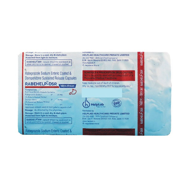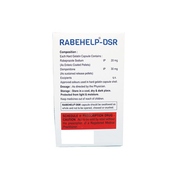 The doctor's recommended dosage and time for Helplab's Rabehelp-DSR Capsule are to be taken without food. Your illness and how you react to the medication will determine the dose that is administered to you. For as long as your doctor advises, you should continue taking this medication. Your symptoms could return, and your condition could get worse if you discontinue your medicine too soon. Tell your medical team about all other medications you're taking; some may interact with this one or have other side effects.