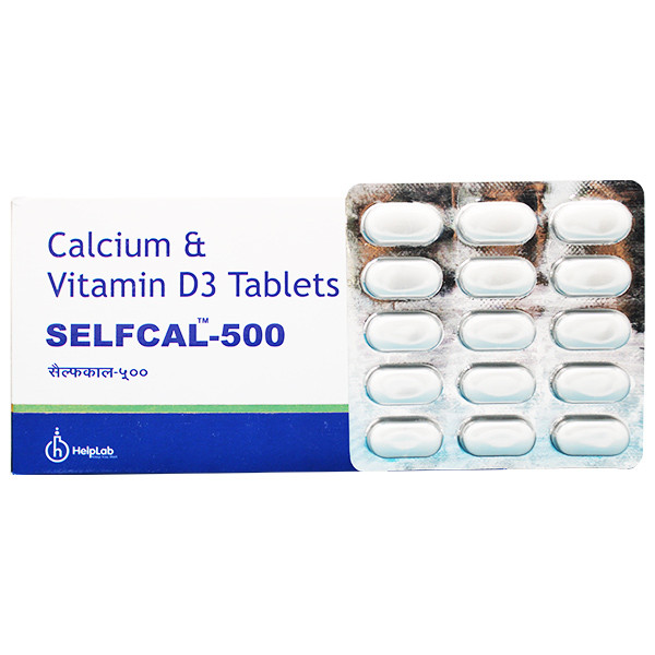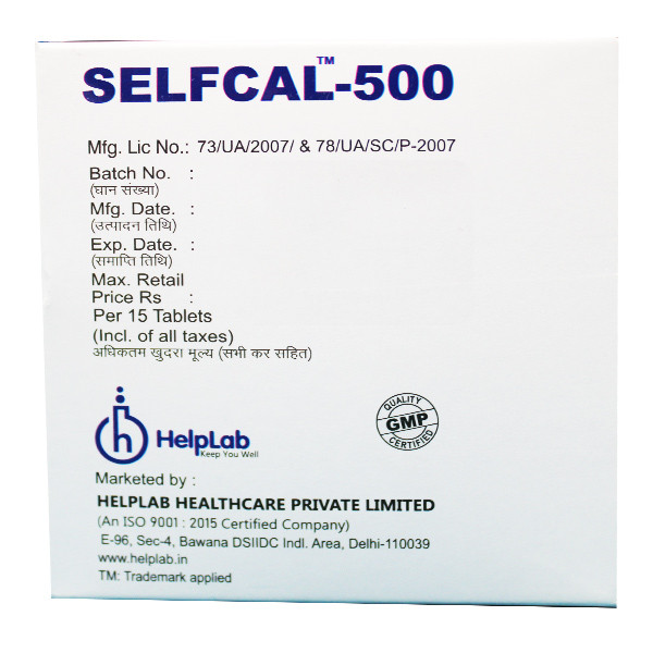The SELFCAL 500 TABLET from Helplab is a dietary supplement primarily used to treat low blood calcium levels. Selfcal 500 Tablet successfully treats several ailments brought on by low calcium levels in the body, including vitamin D deficiency, osteoporosis (weak and brittle bones), hypoparathyroidism (a condition in which the parathyroid glands produce low calcium levels in the body), latent tetany (a muscle disorder accompanied by low blood calcium levels), and rickets or osteomalacia (softening or deforming of bones due to lack of calcium).