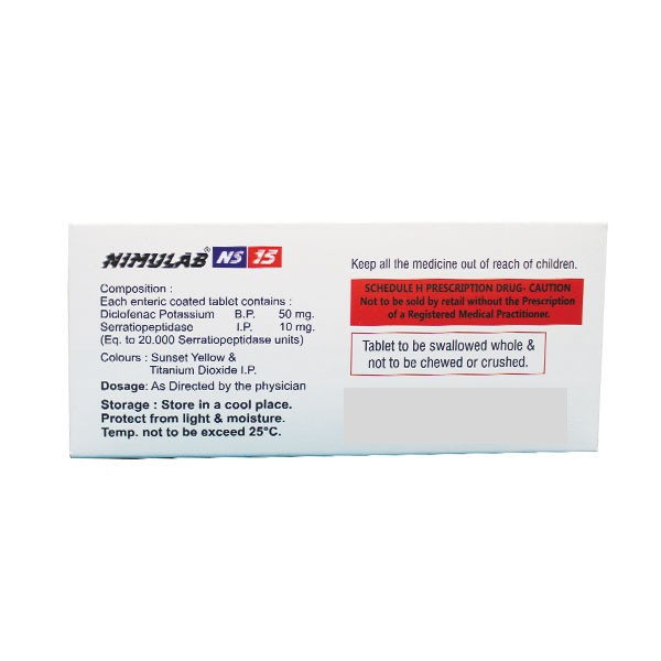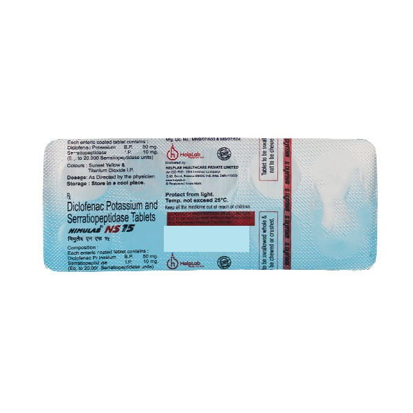 Helplab's NIMULAB NS 15 TABLET is suitable for use with or without food. The dose will be determined by why you are taking it and how well it relieves your symptoms. You should take it exactly as prescribed by your doctor. Take no more or use it longer than your doctor has prescribed. Before taking it, inform your doctor if you have a history of stomach ulcers, bleeding, high blood pressure, or any heart, kidney, or liver problems.